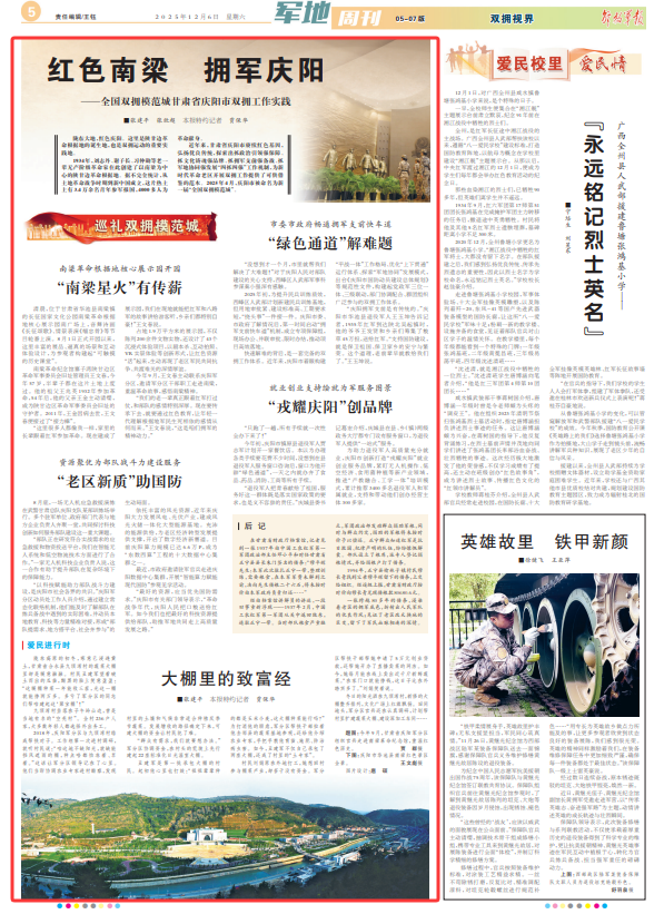 近年来,甘肃省庆阳市赓续红色基因,弘扬优良传统,探索出抓政治引领强保障、抓文化铸魂强品牌、抓拥军支前强备战、抓军地协同强发展“四抓四强”工作机制,为新时代革命老区开展双拥工作提供了可供借鉴的范本。2025年4月,庆阳市被命名为新一届“全国双拥模范城”。