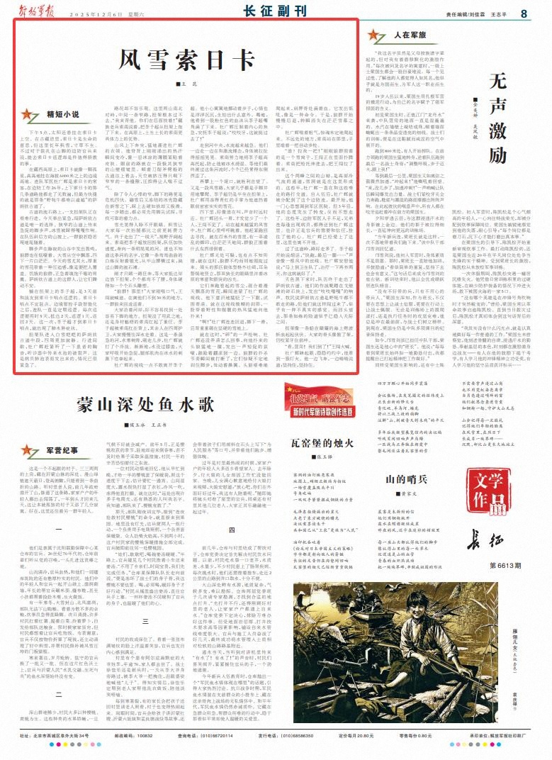 再攀上一个垭口,就胜利在望了。又是一段风雪路,大家几乎都是手脚并用地攀爬。李子超仍是半坐在担架上,杜广辉用冻得青红的手掌为他遮挡着眼前密密实实的雪花。