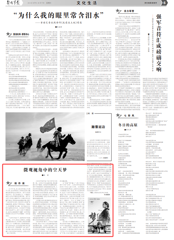 11月中旬,在人民空军成立76周年之际,由空军政治工作部出品的主题微电影《梦远》全网发布。该片以机场旁边平凡一家人的视角,从一个侧面勾画出人民空军建设发展历程。该片从生活工作的点滴细节中,反映空军官兵履行使命、昂扬奋进的精神风貌,展示“人民空军为人民,人民空军人民爱”的细腻情感,演绎出“梦想虽远,不懈奋斗,终将梦圆”的主题。该片推出后立即引起观众的关注。在2025年中国金鸡百花电影节上,该片入围户外展映活动,成功让国防教育“破圈”,是军事宣传借助文化艺术平台传播的一次有益尝试。