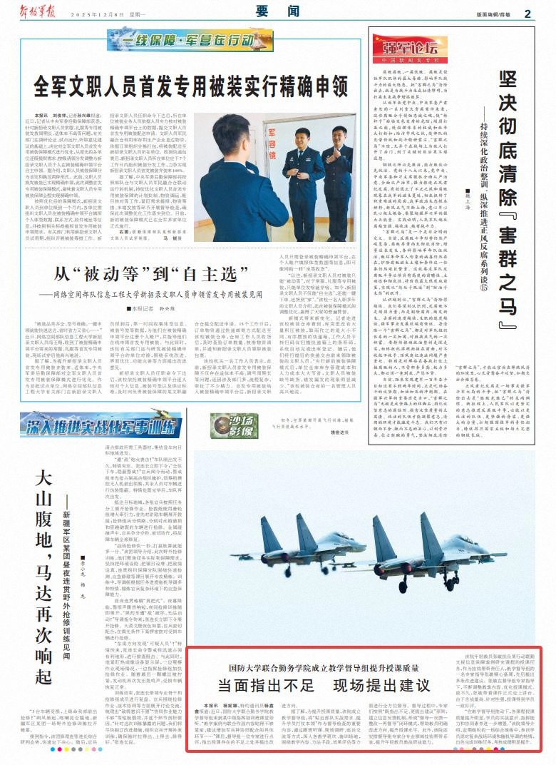 解放军报讯 杨妮娜、特约通讯员杨鑫鑫报道:近日,国防大学联合勤务学院教学督导组来到某中级指挥培训班课堂旁听。“教学案例与联合作战内容贴得不够紧密,建议增加军兵种协同配合的具体环节……”课后,督导组一位专家进行点评,指出授课存在的不足之处并提出改进方向。