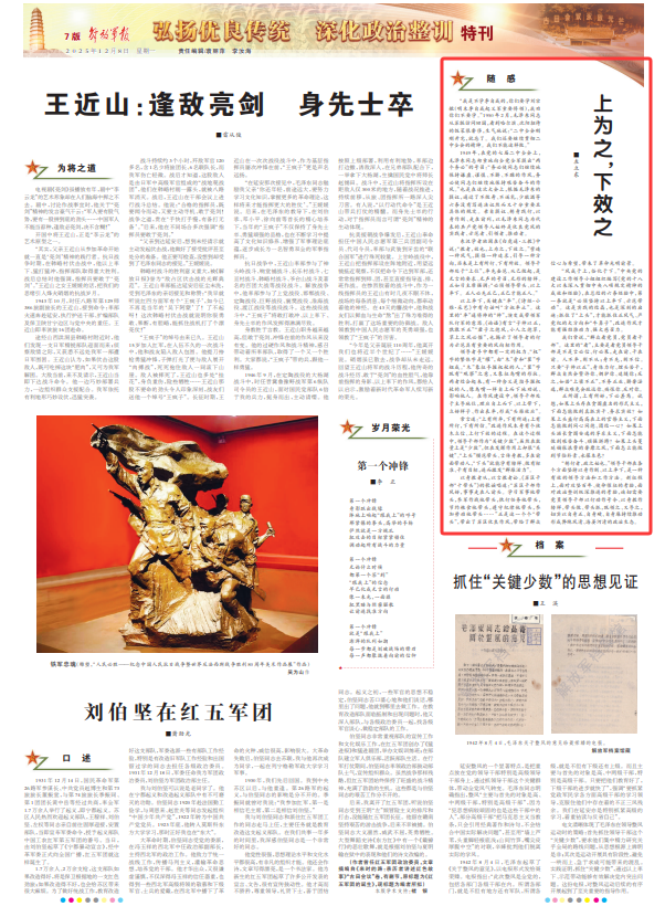 以身教者从,以言教者讼。《苏区干部“十带头”》的歌谣唱道:“苏区干部作风好,事事走在人前头。学习军事他带头,参军作战他带头,执行任务他带头,节约粮食他带头,遵守纪律他带头,参加劳动他带头……”正是这一个个“带头”,带出了苏区优良作风,带给了群众信心与希望,带来了革命光明前景。