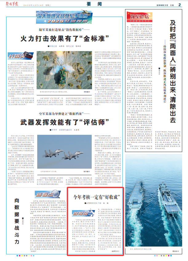 近段时间,面对即将到来的年终考核,我们组织官兵利用数据库分析训练成效、总结经验得失,针对短板课目展开强训。看着训练场上火热的练兵场景,我相信,这次年终考核,大家一定能有“好收成”!