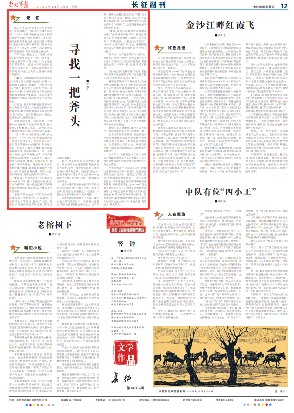 我又问:“当年他们用了17把斧头,为什么只找到一把呢?”老人答道:“斧头本是木工用的工具,战士们借用后,都要还回去的。时间一长,也就不见了踪迹。”