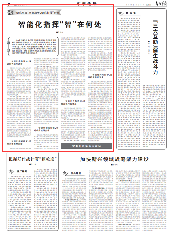 智能化战争的制胜机理正从“平台优势”转向“体系优势”,即通过动态网络整合分散的作战资源,形成瞬时、精准的协同效应。指挥员必须超越传统的兵力集中模式,掌握在多维空间聚合战斗力的指挥艺术。