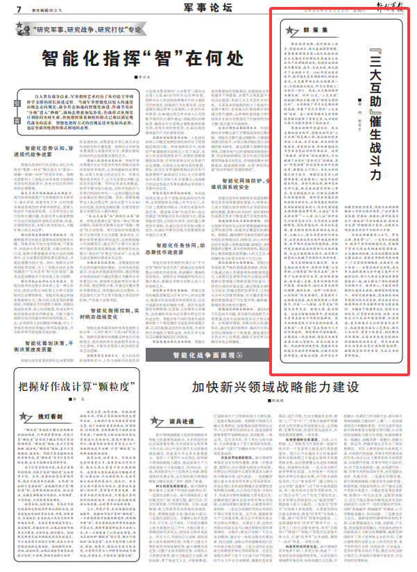 技术互助锻造打赢本领。在王克勤运动实践中,经常性开展“以老带新、以强带弱”的“技术互助”,战斗骨干与新兵结对互学,老兵倾囊相授,新兵虚心求教,在共同研练中提升技能、密切协同,通过互考互评深化理解、锤炼本领。这种“以战领训、以训促战”的互助模式,显著提升了全班射击技能、战术协同等核心作战能力,形成“一人精通、全员受益”的技术共享生态。胜战之要,技为根基。信息化智能化战争中,官兵战技术素养直接关乎作战效能释放。技术互助既是战斗力生成的加速器,更是锻造“一专多能”复合型战斗人才的重要途径。推进新时代练兵备战,应赓续这一优良传统,将技术互助更深层次融入智能化、体系化练兵实践。依托新型训练手段,构建技术互助能力生成的有效链路,打破专业和兵种壁垒,在联合训练、兵种交叉中拓展官兵能力维度,将技术互助的精髓融入实战化练兵场景,广泛开展专长任教、官教兵、兵教兵,提升战技术水平,锻造出“平时互教互助、战时互为支撑”的钢铁战斗集体,让胜战本领在技术共享中不断淬火升级。