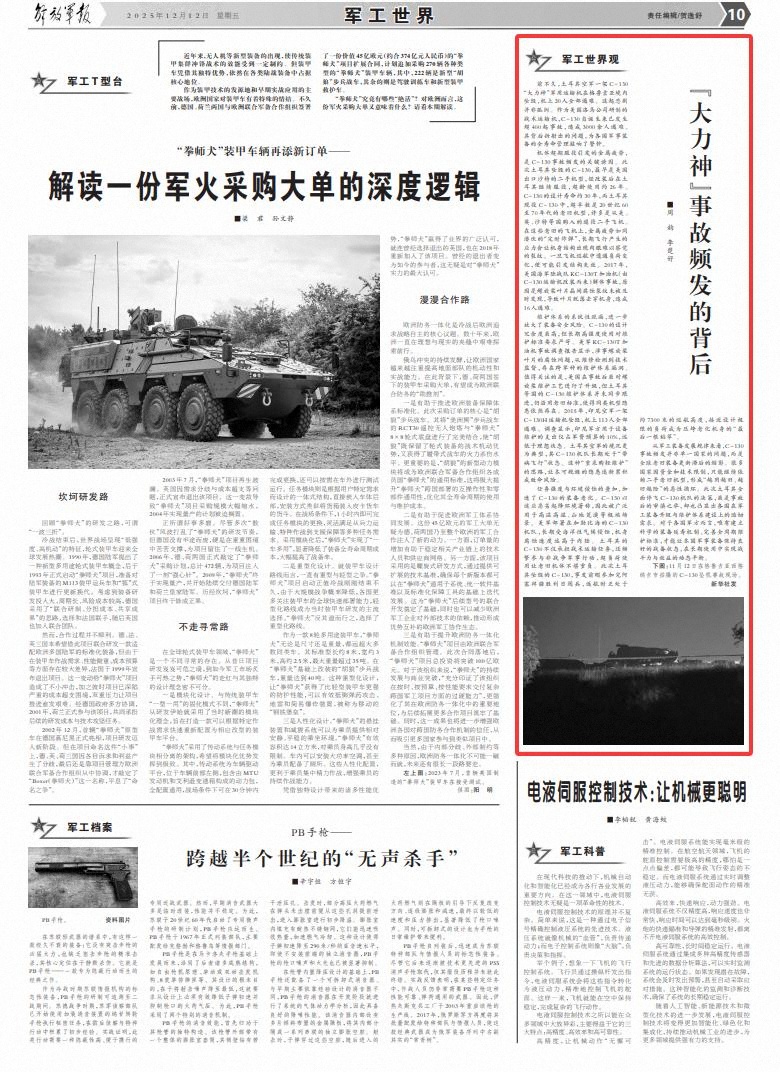前不久,土耳其空军一架C-130“大力神”军用运输机在格鲁吉亚境内坠毁,机上20人全部遇难。这起悲剧并非孤例。作为美国洛马公司研制的战术运输机,C-130自诞生来已发生超400起事故,造成3000余人遇难。其背后折射出的问题,为各国军事装备的全寿命管理敲响了警钟。