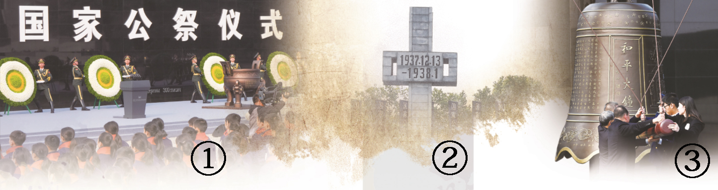 图①、图②、图③:2024年12月13日,南京大屠杀死难者国家公祭仪式在侵华日军南京大屠杀遇难同胞纪念馆举行;仪式上社会各界代表撞响和平大钟。