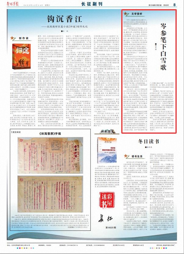 回首历史苍茫春秋,遥望边疆万里山川,想象岑参当年,面对风急雪阔、三军大呼,笔下白雪黄沙,映衬将士出征时的豪迈肝胆。今日捧卷重读,依然可见一股荡气回肠的英雄气。