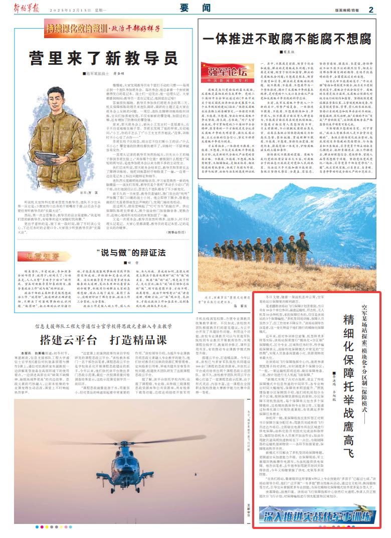 “在我们场站,像谢瑞田这样掌握4种以上专业技能的‘多面手’已超过七成。”该场站领导介绍,他们广泛开展“一专多能”群众性练兵活动,通过交叉轮训、换岗锻炼等方式,引导官兵掌握更多专业技能,为深化精细化保障模式培养更多复合型人才。