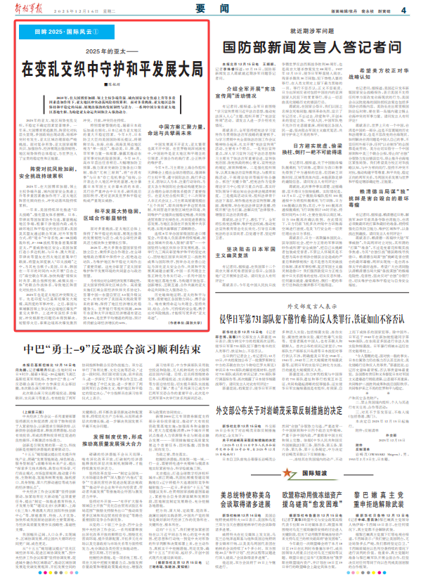 特别需要警惕的是,随着日本政坛加速右倾化,日本已成为亚太地区的重大不稳定因素。今年3月,日本防卫大臣向美国国防部长提议,将朝鲜半岛、东海、台海、南海及周边地区视为“单一战区”,推动美、日、韩、澳、菲军事力量一体部署,暴露其推动东亚军事对抗的险恶图谋。今年10月,高市早苗出任首相后,大幅增加防卫预算,极力谋求突破防卫装备出口限制、修改“无核三原则”,将“台湾有事”与日本“存亡危机事态”挂钩,公开表达介入地区冲突的意愿,充分暴露日本军国主义余毒未消的本质。其行径严重冲击中日关系,破坏战后国际秩序,更对亚洲及世界和平稳定构成严重现实威胁。