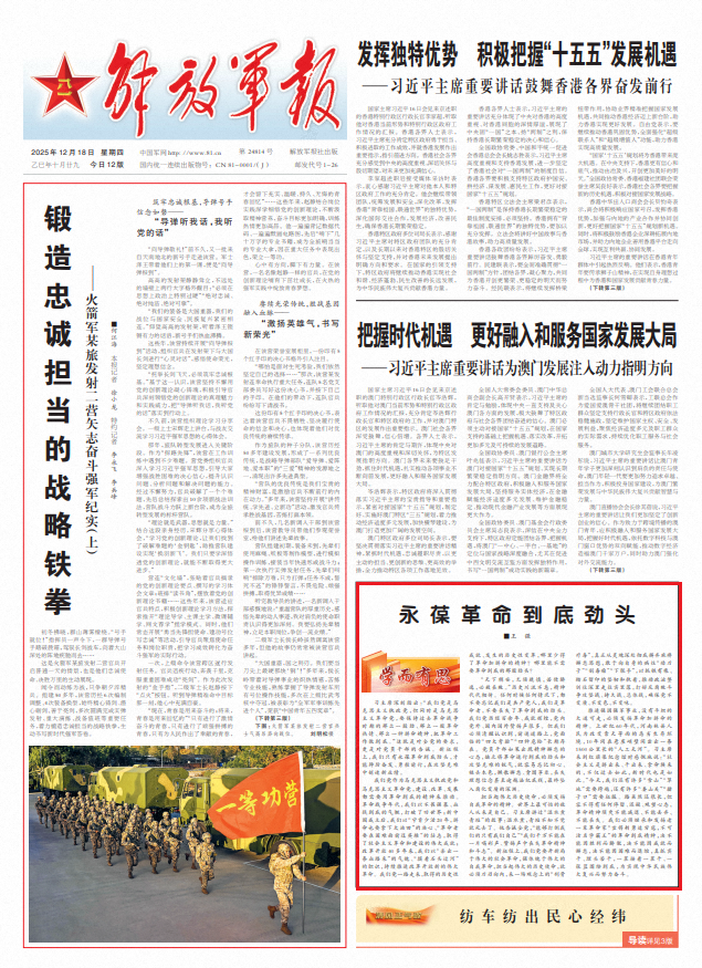 推进强国强军事业,没有平坦的大道可走,必须发扬革命加拼命的精神。上世纪60年代,河南林县人民为改变靠天等雨的恶劣生存环境,10年间在悬崖峭壁间凿出一条1500公里长的“人工天河”。习主席来到红旗渠纪念馆时感慨地说:“社会主义是拼出来、干出来、拿命换来的,不仅过去如此,新时代也是如此。”今天,我们还有许多“雪山”“草地”需要跨越,还有许多“娄山关”“腊子口”需要征服。路虽然还很长,但容不得有任何停留、迟疑、观望心态,革命精神须臾不能减退、不能丢弃、不能丧失。我们必须继承和发扬老一辈革命家“宜将剩勇追穷寇,不可沽名学霸王”的革命到底精神,决不能因胜利而骄傲,决不能因成就而懈怠,决不能因困难而退缩,真抓实干、埋头苦干,一茬接着一茬干、一张蓝图绘到底,为实现中华民族伟大复兴而努力奋斗。