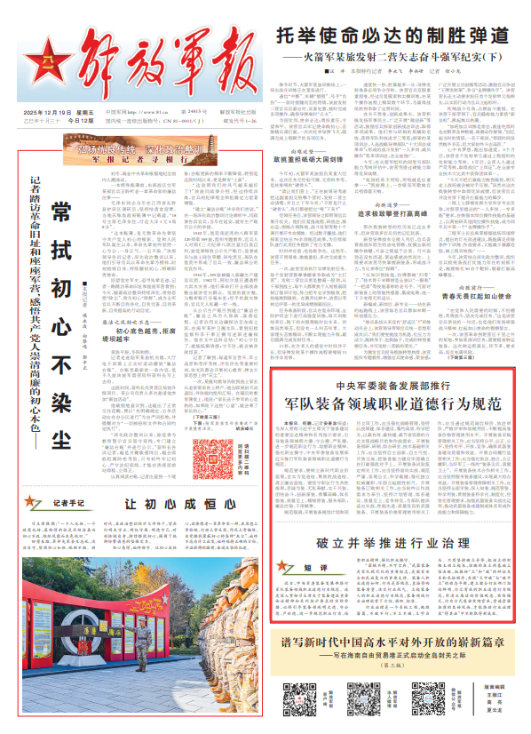 “器械不精,不可言兵。”武器装备是军队现代化的重要标志,是国家安全和民族复兴的重要支撑。装备人职业道德如何、行为是否规范,直接影响装备质量、决定行业风气。立起装备人的职业道德行为规范,装备领域行业治理就有了方向、旗帜、标准。