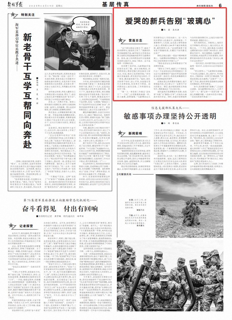如今,闵卓群告别“玻璃心”,正在淬火成钢。而马勐博的笔记本上,又多了几页“一人一策”记录——里面写着一名战士的睡眠问题、一名新兵的思乡情绪、一名老兵的晋升焦虑……