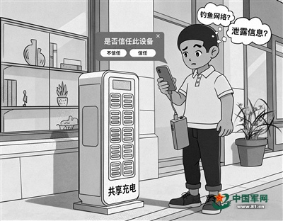 近日,某部战士小李休假期间在外旅行时,手机电量告急,于是在路边租借了共享充电宝。插上数据线后,他的手机屏幕上突然弹出一个提示框:“是否信任此设备”。