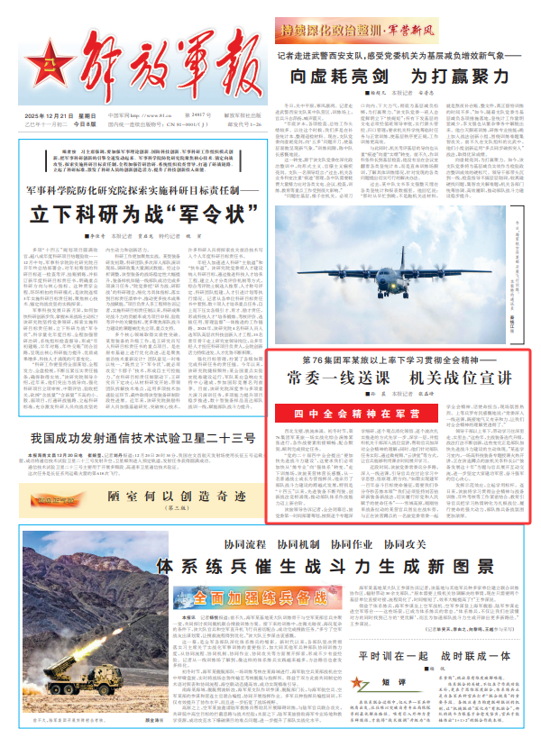 “党的二十届四中全会提出‘要加快先进战斗力建设’,这要求我们必须加快从‘练专业’向‘强体系’转变。”走下训练场,该旅某营林营长感慨,从一名普通战士成长为营指挥员,他亲历了部队战斗力建设的跨越式发展,特别是“十四五”以来,先进装备不断列装、创新战法竞相涌现,推动部队体系作战能力迈上新台阶。