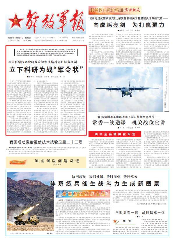 多项“十四五”规划项目圆满收官,超八成年度科研项目结题验收……12月中旬,军事科学院防化研究院召开年终总结部署会,对年初筹划的科研目标逐一检查考评、挂账销账,并拟订新年度科研目标责任书,明确重点科研方向与核心指标。这种贯穿全程、环环相扣的科研模式,是该院连续3年实施科研目标责任制,聚焦核心技术、锚定向战攻坚的实践探索。