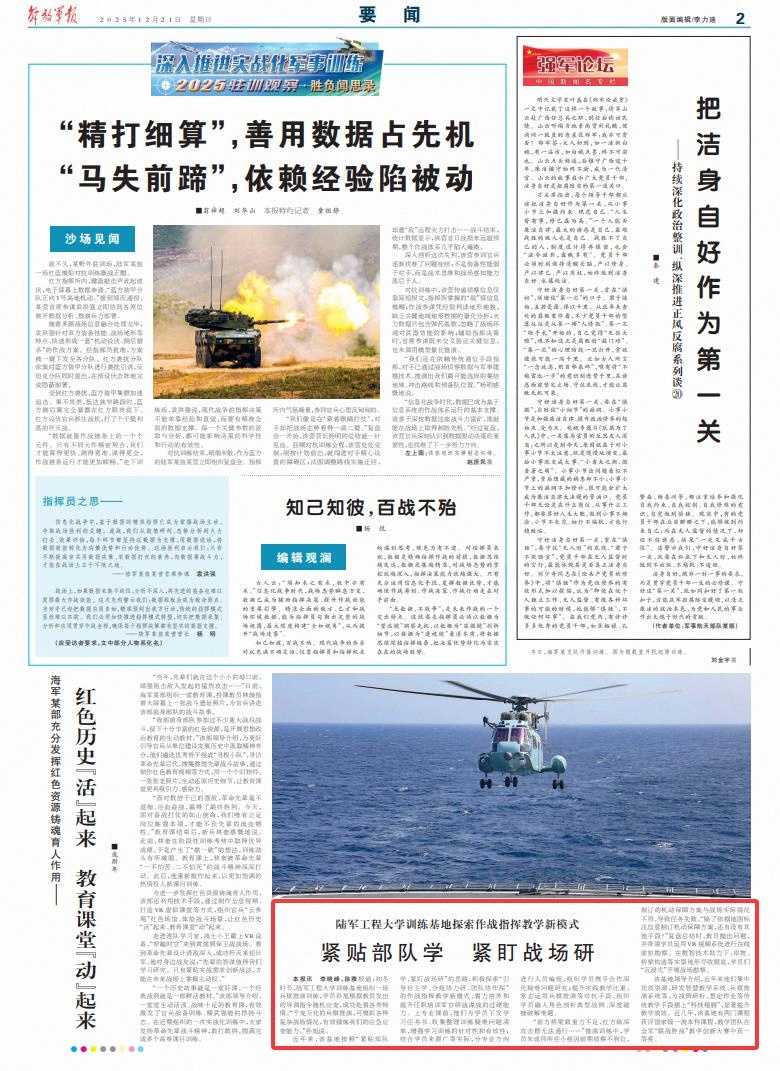该基地领导介绍,近年来他们集中优质资源,研发智慧教学系统、兵棋推演系统等,为战例研析、想定作业等传统教学手段插上“科技翅膀”,显著提升教学质效。近几年,该基地有两门课程获评国家级一流本科课程,教学团队在全军“联战胜战”教学创新大赛中获一等奖。
