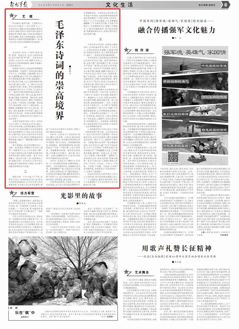 毛泽东的诗词创作,在情景交融的同时,也用深邃的哲思,昭示了人民至上、光明在前的历史逻辑,以意境与物境、情境的完美结合,在人类的思想宝库中,增添了一笔弥足珍贵的精神财富。