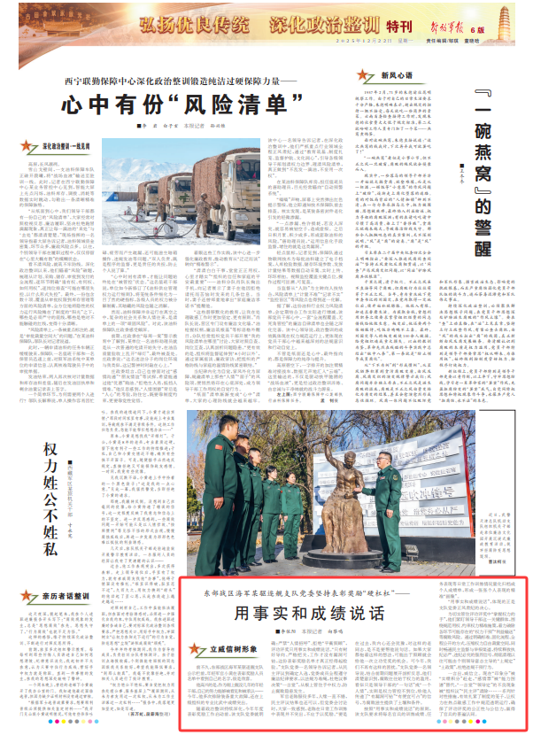 一言出,威信立。现在“印象分”被“实绩积分”赶走,“感情票”被“能力图谱”替代,“一言堂”“领导定”的不良现象被“组织议”“民主评”清除……一系列针对性措施,有效扎紧了制度的笼子,让权力在热点敏感工作中规范透明运行,确保了评功评奖的公正性与公信力,赢得了官兵的普遍认同。