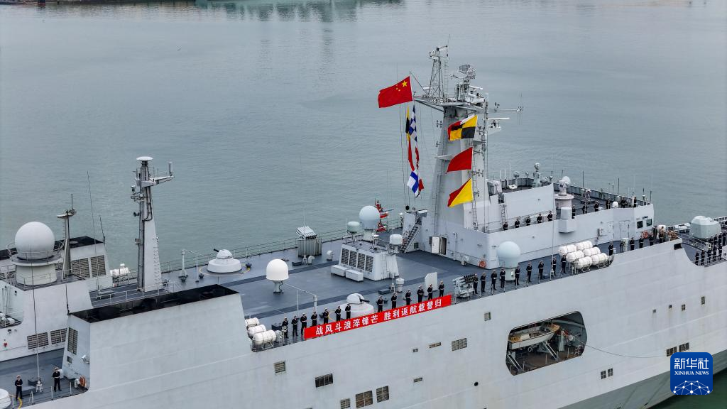 12月22日,中国海军989编队完成远海综合实习任务返回青岛。新华社发(于涛摄)