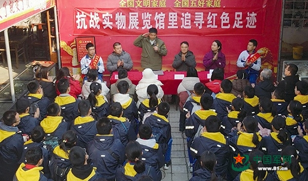 耿风泉儿子耿文雷带着抗战实物走进当地学校,开展国防教育活动。