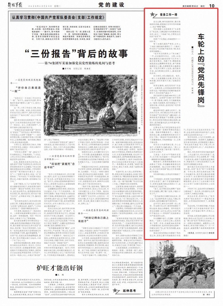 越是条件艰苦,越要立好样子。每次执行任务,我们都会在车队设置“党员先锋岗”“党员责任区”:翻达坂时,先锋岗的党员要提前下车探路;过冰滩时,责任区的党员要站在路边指挥;宿营时,党员帐篷永远扎在车队最外围、最挡风的地方。