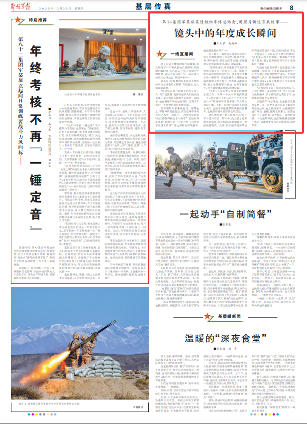 前不久,第76集团军某旅某连组织的年终总结会形式新颖、气氛融洽,让大家印象深刻。