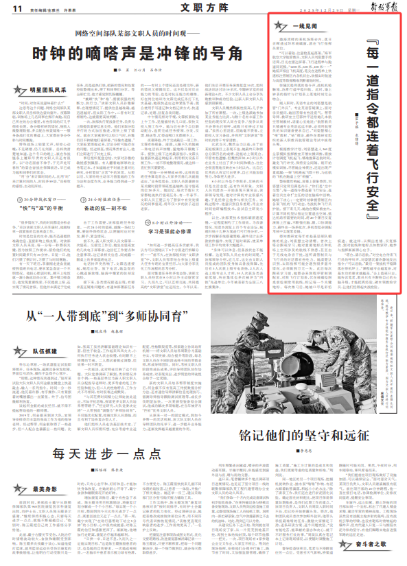 警报骤然响起,屏幕上景象惨烈,刘姿慧只觉背后满是冷汗。“你们是‘空中交警’,每一道指令都连着飞行安全,连着官兵生命!”主任的话在脑海中回响,她暗下决心:一定要时刻掌握管制区内各架飞机的飞行动态,为战机和飞行员护航。接下来几天,她泡在模拟教室内,计算不同机型从指定位置退出空域、抵达机场所需要的时间,将20个课目反复演练上百遍,不断强化脑、眼、口协调能力,最终在一场多批次、多机型复杂调配考核中实现零差错。