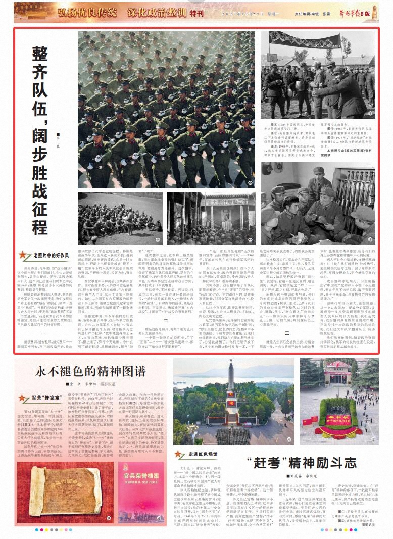 但随着政治整训深入推进,悠久的党史军史又一次铺展开来,我们发现这个看上去有些“陌生”的词汇,原本一直是个“热词”。当我们经由老档案、老照片走入历史时,更发现“政治整训”不是一个普通词汇,而是我军自我革命的独特法宝,是官兵建功打赢的光荣传统,早已融入建军百年的壮丽征程。