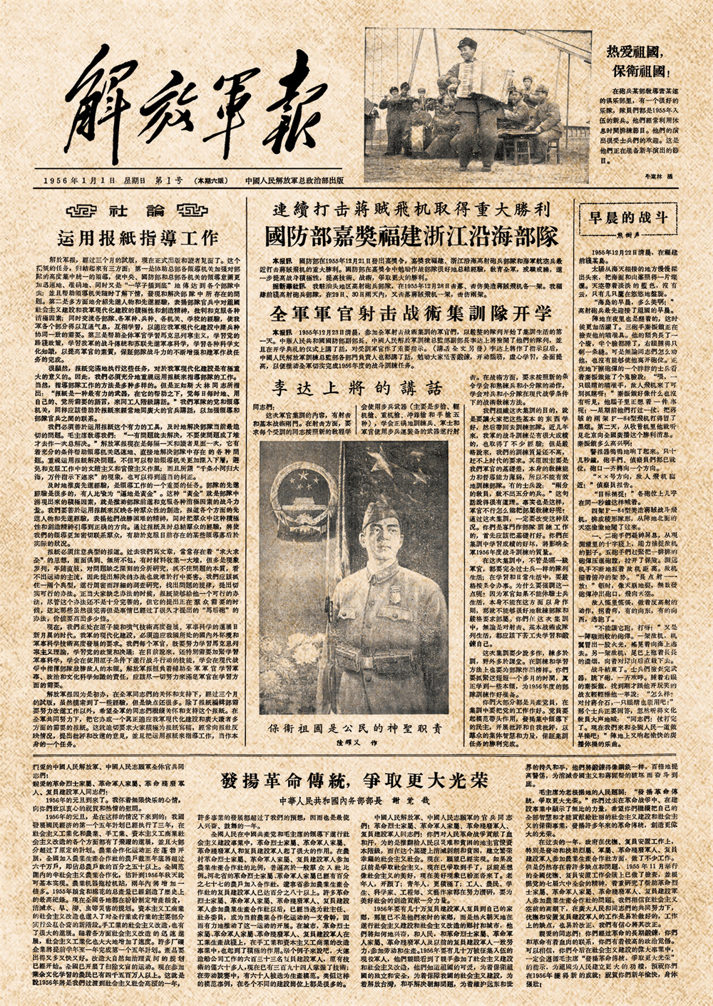 1956年1月1日,14万份解放军报创刊号,诞生在北京平安里3号的一个印刷车间,它们搭乘汽车、火车一路辗转,用骆驼、牦牛送到万里边关。