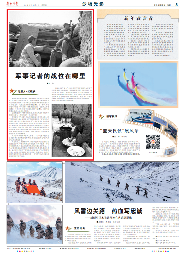 身为后来人,擎旗慰前辈。伴着人民军队由小到大、由弱到强的步伐,军事新闻事业不断发展,为我军赢得一场场胜利擂鼓助威,为推进国防和军队现代化建设凝神聚力。今天,在奋进强军的新征程中,军事新闻工作者肩负着重大使命。如何宣传好习近平强军思想,提振官兵士气,汇聚强军力量?如何提升军事新闻宣传的传播力和影响力?如何把新时代强军故事讲出温度和力量……要回答好这些问题,就要找准军事记者的战位。