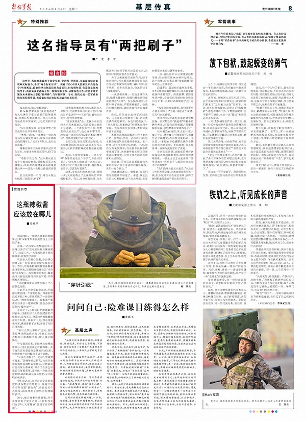 前段时间,一瓶家人寄来的辣椒酱,让第78集团军某旅某营战士小彭犯了难。