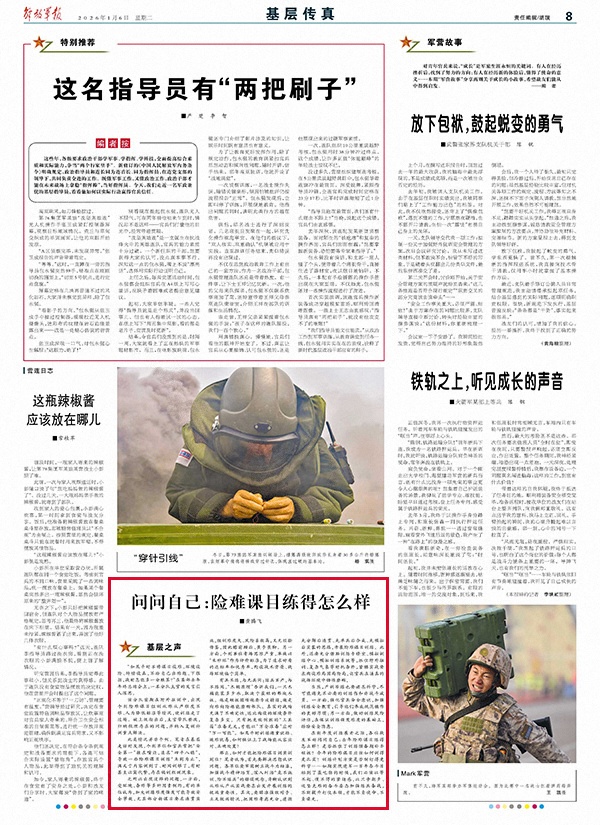 在新年度训练展开之际,各位战友不妨问问自己:去年险难课目练得怎么样?是否抓住了训练预备期补齐短板?今年的险难课目应该如何训得更扎实?训练计划方案是否制订得更科学……如期实现建军一百年奋斗目标到了最吃劲的时候,我们必须以等不起、慢不得的紧迫感,以只争朝夕、攻坚克难的奋斗姿态加强练兵备战,不断提升打仗本领,才能不负使命、不负荣光。