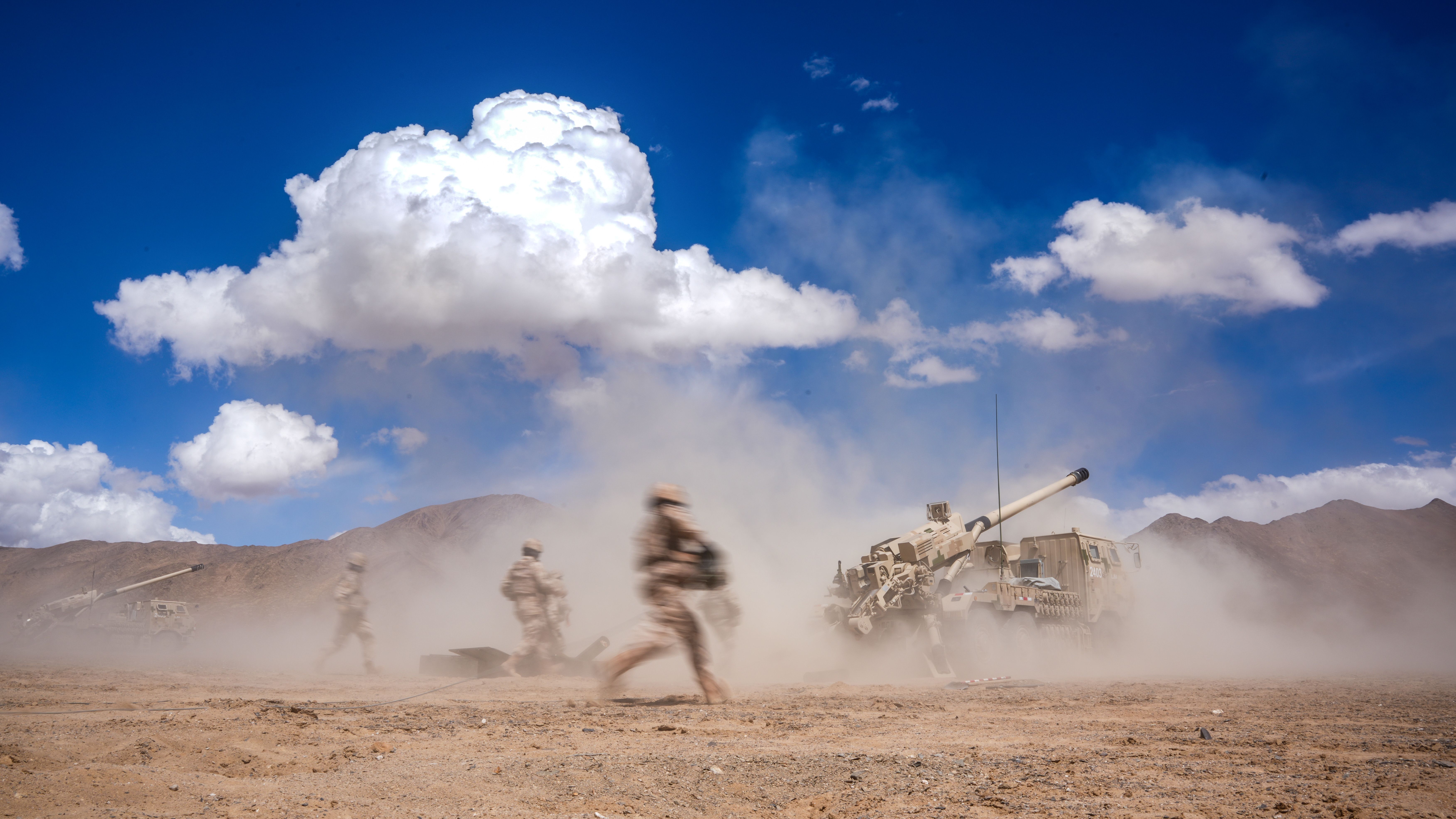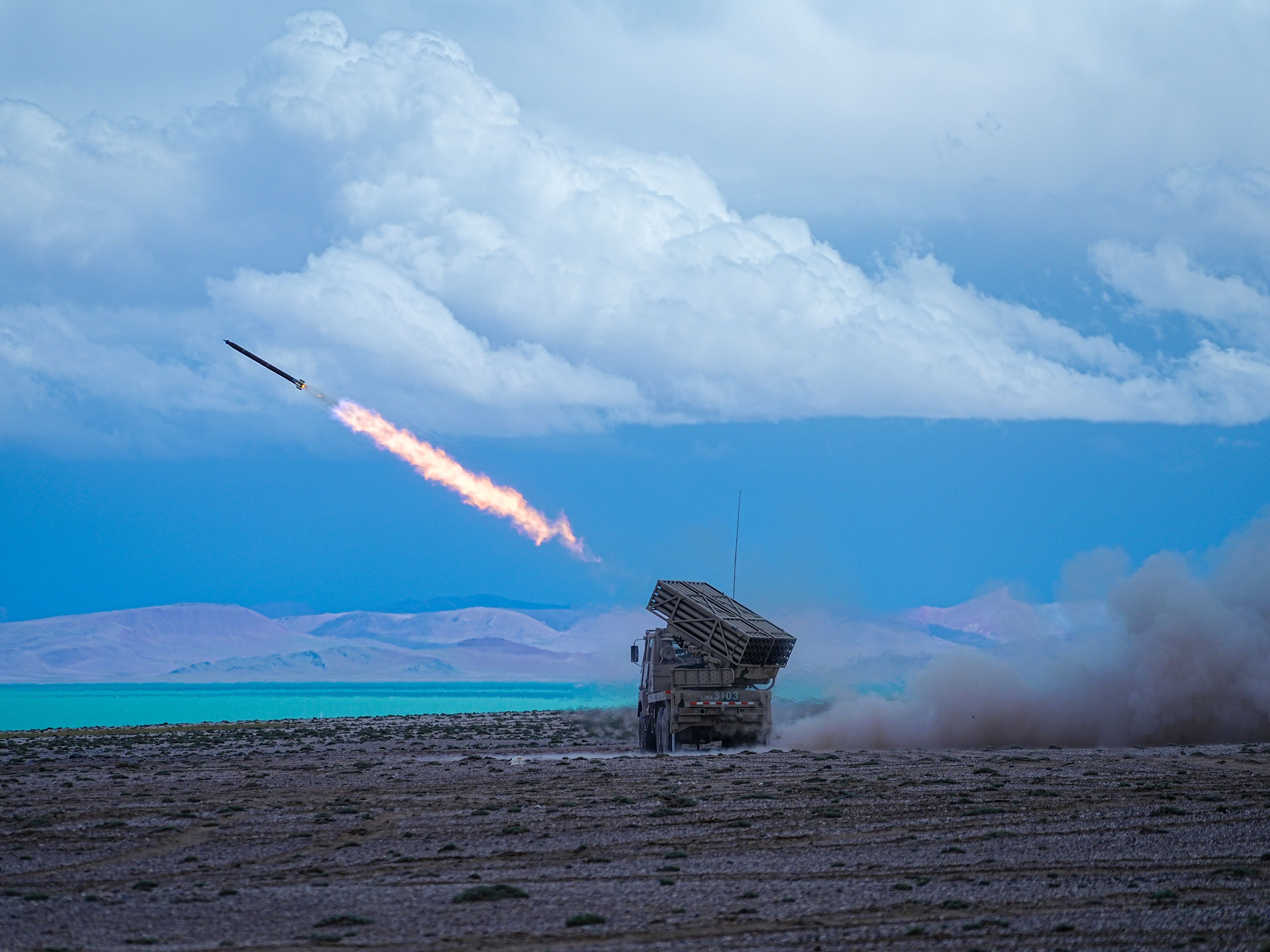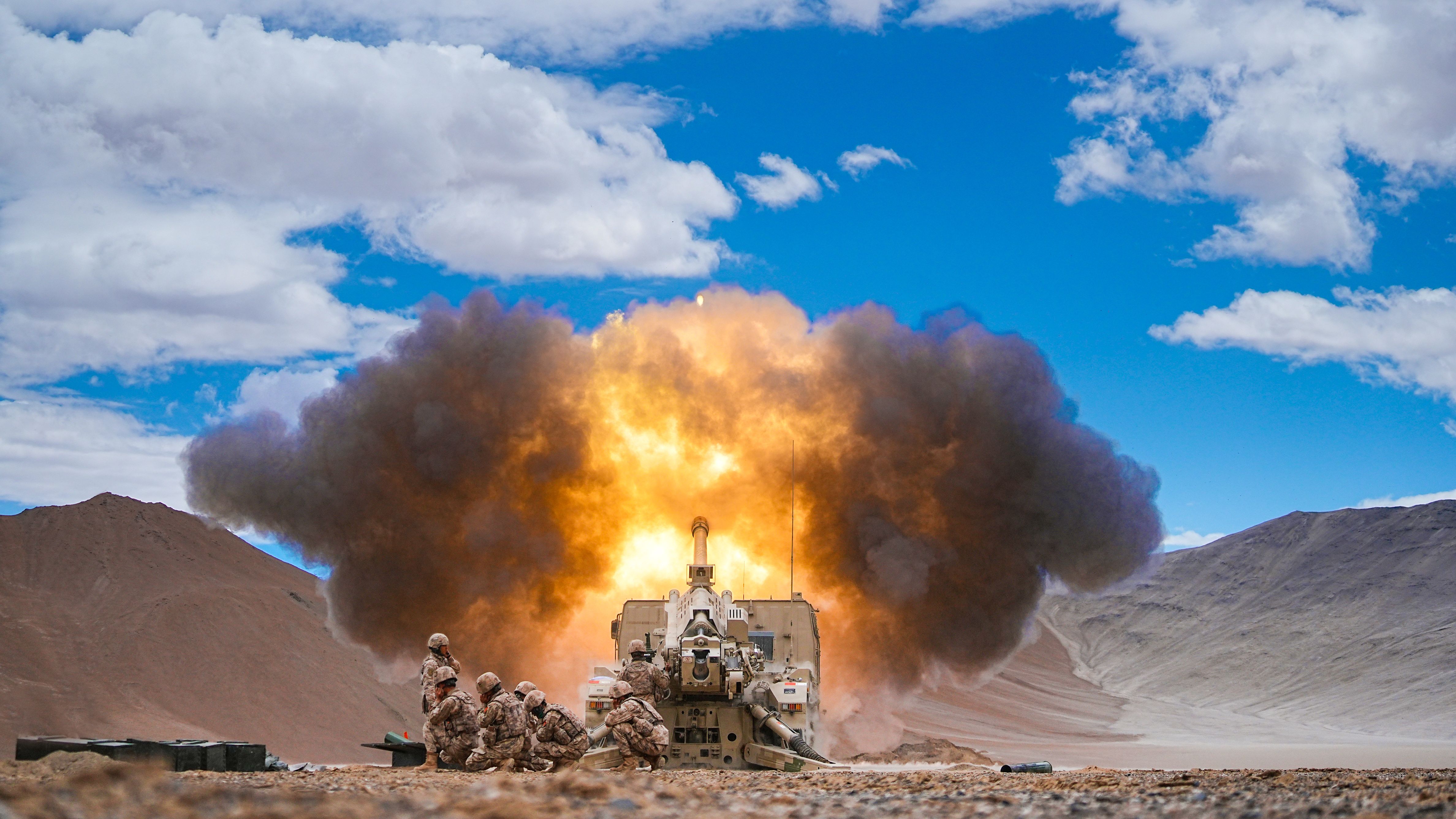 战车驰骋,炮声隆隆。陆军某团火力分队组织官兵远程机动至某训练场,在海拔5000多米的雪域高原组织了一场全要素、多弹种的综合实弹射击演练,着力锤炼高原环境下有人无人协同作战能力和火力分队精确打击。