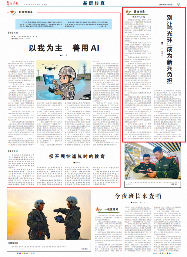 笔者了解到,小卢的情况并非个例。近年来,越来越多有特长、懂专业的大学生参军入伍,给部队注入了新鲜血液,也让带兵人眼前一亮。实践中,个别骨干急于求成、“提前培养”,反而给一些还在适应期的新兵带去烦恼。