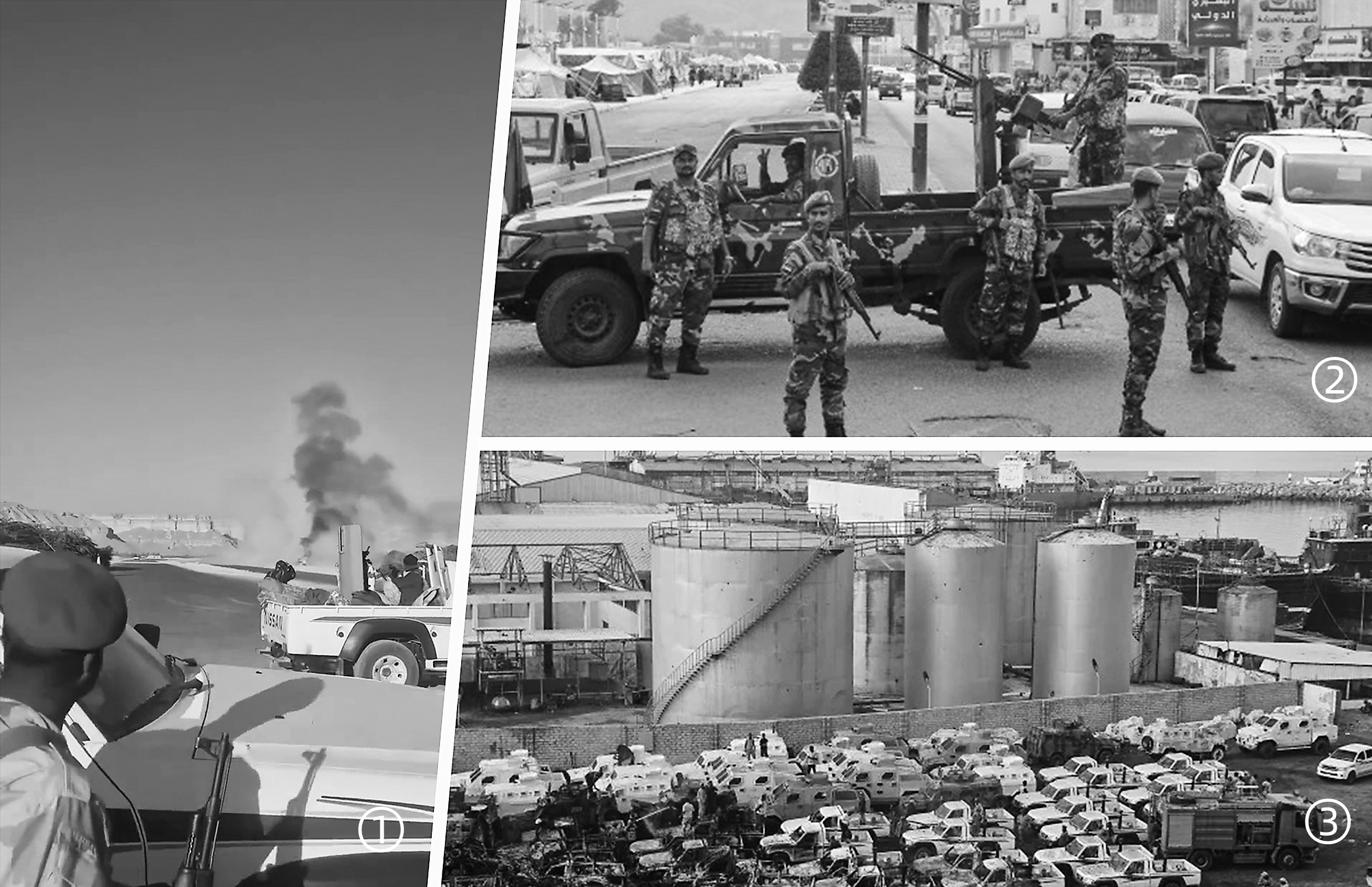 图③:沙特主导的多国联军空袭也门穆卡拉港后部分被损毁的车辆。图片均为资料图片