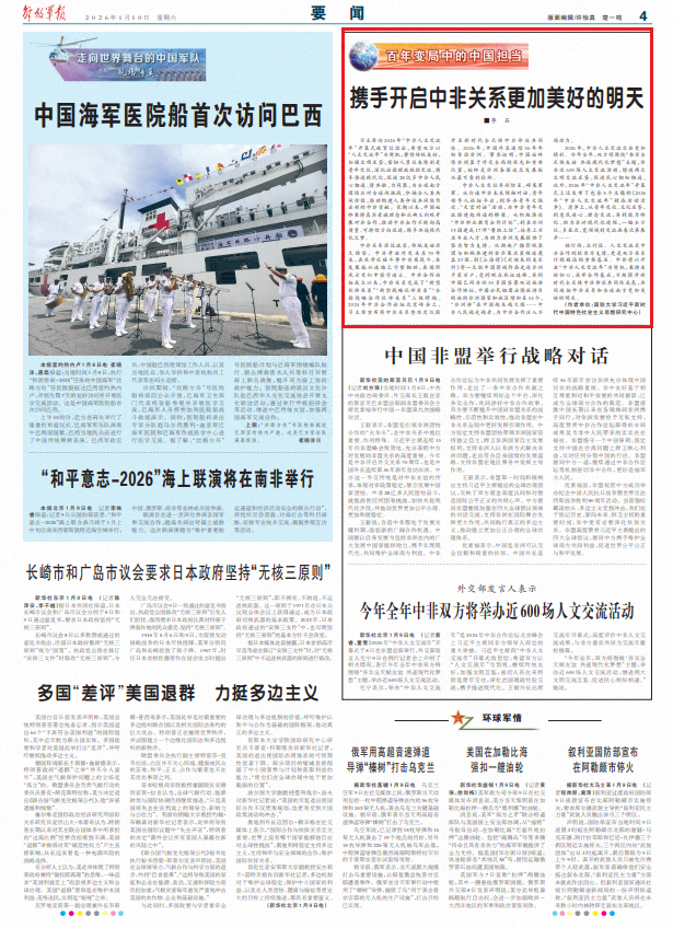 中非关系源远流长,传统友谊历久弥坚。中非开启外交关系70年来,在反帝反殖斗争中并肩战斗,在发展振兴道路上守望相助,在国际风云变幻中坚守道义。中非合作论坛成立以来,中非关系完成了“新型伙伴关系”“新型战略伙伴关系”“全面战略合作伙伴关系”三级跨越。2024年中非合作论坛北京峰会上,习主席宣布将中非关系整体定位提升至新时代全天候中非命运共同体。2026年,中国外长连续36年年初首访非洲。事实证明,中国始终将非洲置于外交全局的优先和重要位置,始终是非洲各国追求发展振兴最可靠的伙伴。