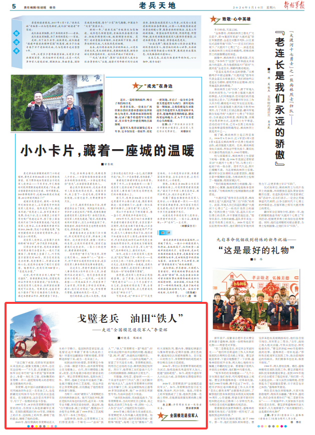 2024年,李荣辉获评“全国模范退役军人”。如今,李荣辉依然坚守在戈壁滩,和油井、风沙为伴。他说,尽管身上的军装换成了工装,他依然会像一名战士那样,在能源高质量发展的路上继续奋斗。
