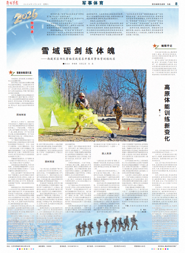 2026年,我们将继续深入军体训练场、驻训场、演兵场,着力呈现部队开展军体训练的火热实践和官兵挑战极限、超越自我的昂扬风貌,分享先进的军体训练理念和科学的军体训练方法,为部队提升军体训练质效提供借鉴和参照。