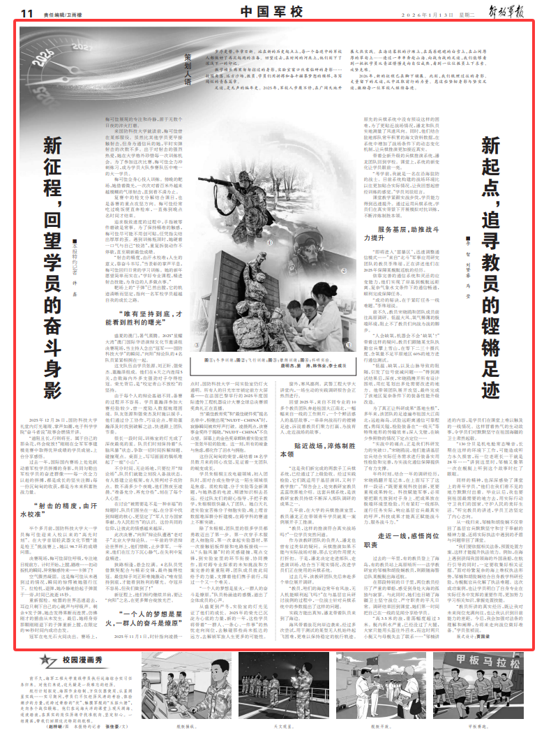 2026年,新的征程已在脚下铺展。此刻,我们梳理过往的身影、丈量留下的足迹,从中汲取前行的力量。愿这些坚韧身影与坚实足迹,激励每一位军校人继续奋进。