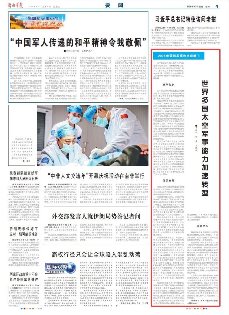 太空日益成为国际战略竞争与高端战争的制高点。为积极经略太空、塑造有利态势,相关国家正以极大的决心,推动太空军事能力加速转型。2026年,这一进程迈入太空实战化能力加速形成、慑战水平持续提升的关键阶段。