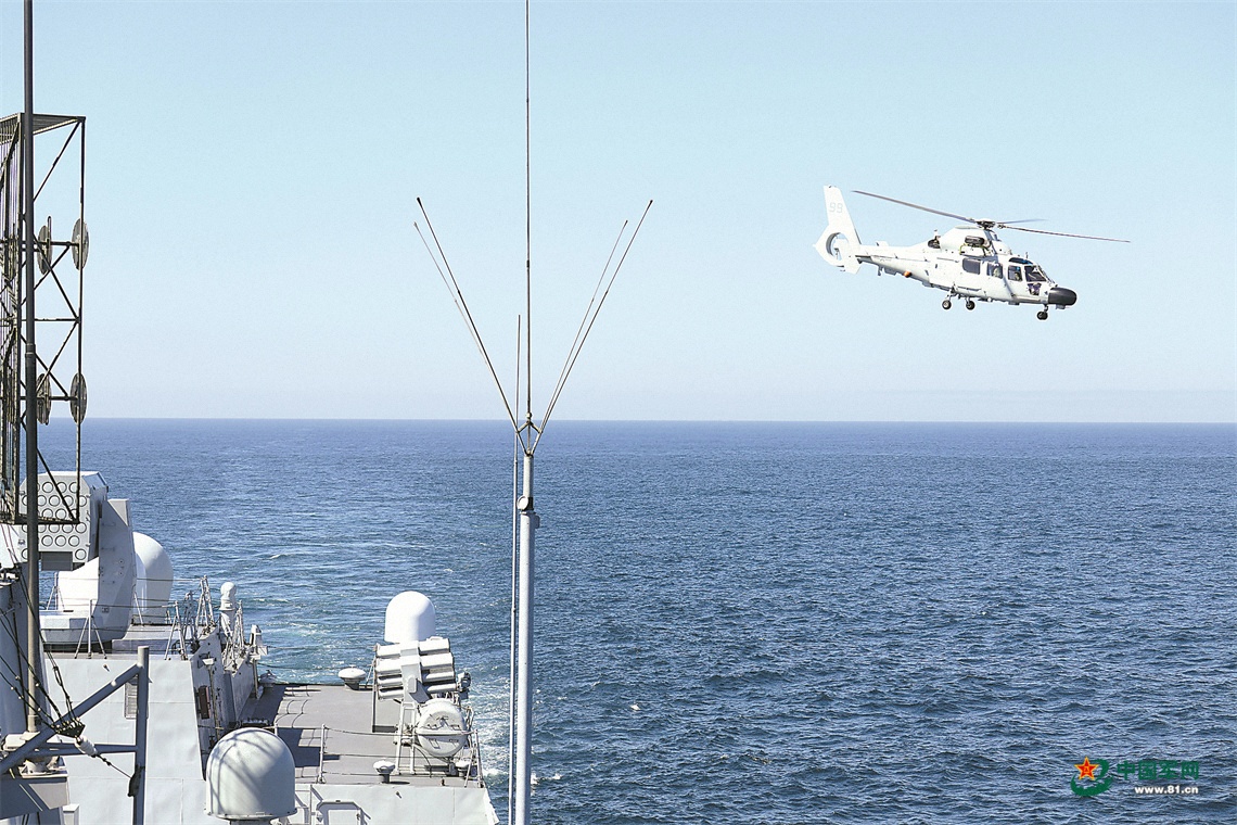 中方舰载直升机在演练中。杜江帆摄
