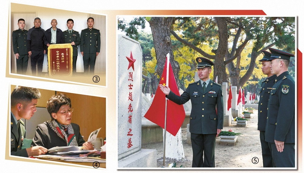 图⑤:寻根小组官兵在赵先有烈士墓前开展教育。