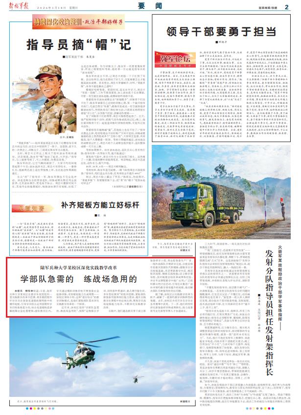 据了解,该校区以实践教学改革为抓手,破解了一批制约教学训练转型的难题。去年,该校区共有百余名学员在各类赛事中获奖。下一步,他们将持续深化新装备研训和成果转化,助力高素质专业化新型军事人才加速成长。