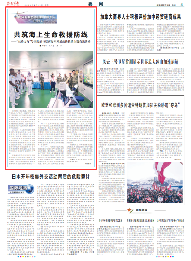 1月13日,巴海军军医登上“丝路方舟”号医院船,近距离感受中国战伤救援技术。船上各种先进的医疗设备琳琅满目。巴方人员驻足询问,在得到中方医护人员耐心细致的解答后,不时记录下设备操作流程等内容。巴方人员对中方在战伤救援领域的技术创新成果给予高度评价,认为这些成果不仅体现了中国海军的军事医学实力,更为海上生命救援提供了有力保障。