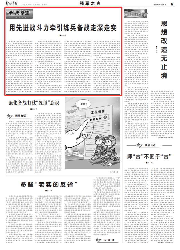 先进战斗力的实战功能,往往受限于练兵备战中的短板弱项,突破这些短板弱项,才能让战斗力要素充分解放出来,形成竞相迸发之势。应打破重米数、秒数、环数的考核惯性,建立以先进战斗力指标为核心的评估体系,引导官兵加大对新装备、新力量、新领域的训练投入,培养造就与先进战斗力相适配的各类优秀军事人才。敢于在高强度对抗中揭短亮丑,通过跨军兵种联合演练、极限环境中的实战化考核,暴露训练中的薄弱环节,倒逼部队在补短板、强弱项中提升实战能力。