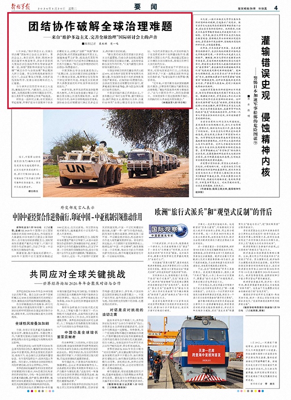 1月19日,“维护多边主义、完善全球治理”国际研讨会在北京举行。本次会议上,来自亚洲、非洲、欧洲20余国的驻华大使及使节,多位中国资深大使及百余位国内外知名专家学者齐聚一堂,围绕“国际秩序演变与全球治理”“地区合作与全球治理”等议题深入研讨交流。在全球性挑战愈加突出的当下,会议汇聚各方智慧,为维护战后国际秩序、完善全球治理体系注入正能量。