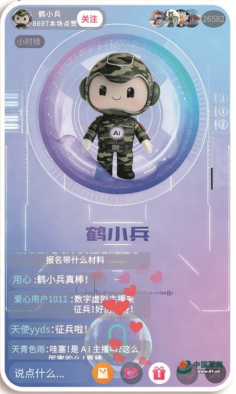 数字虚拟主播“鹤小兵”进行征兵宣传直播。视频截图