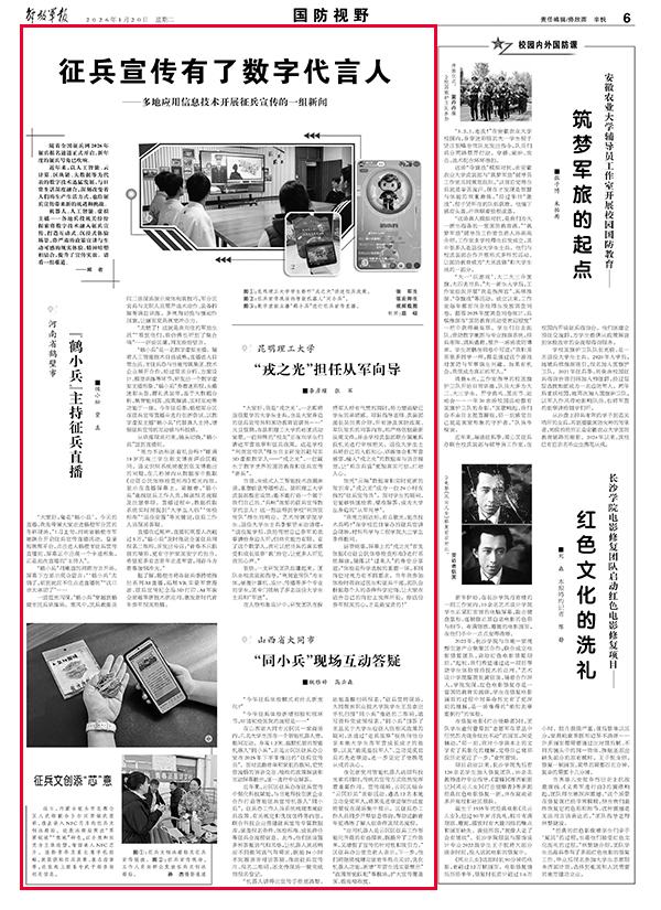 近年来,以人工智能、云计算、区块链、大数据等为代表的数字技术迅猛发展,与日常生活深度融合,深刻改变着人们的生产生活方式,也给征兵宣传带来新的机遇和挑战。