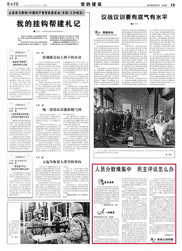 去年底,单位突然接到上级任务,原本计划结合年度组织生活会开展的民主评议党员工作一下面临困境。民主评议是党员接受组织监督、提升党性修养的重要环节,但连队人员常年担负各种保障任务,人员分散、任务繁重,集中组织难度较大。想请教一下,这种动态分散状态下,如何既能保证全员参与评议,又能确保评议质量?